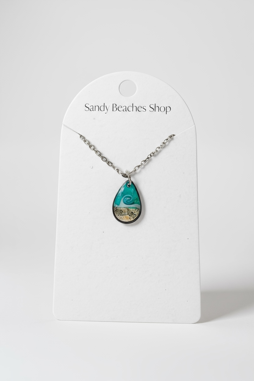 Beach Sand Dainty Drop Wave Necklace | Aqua