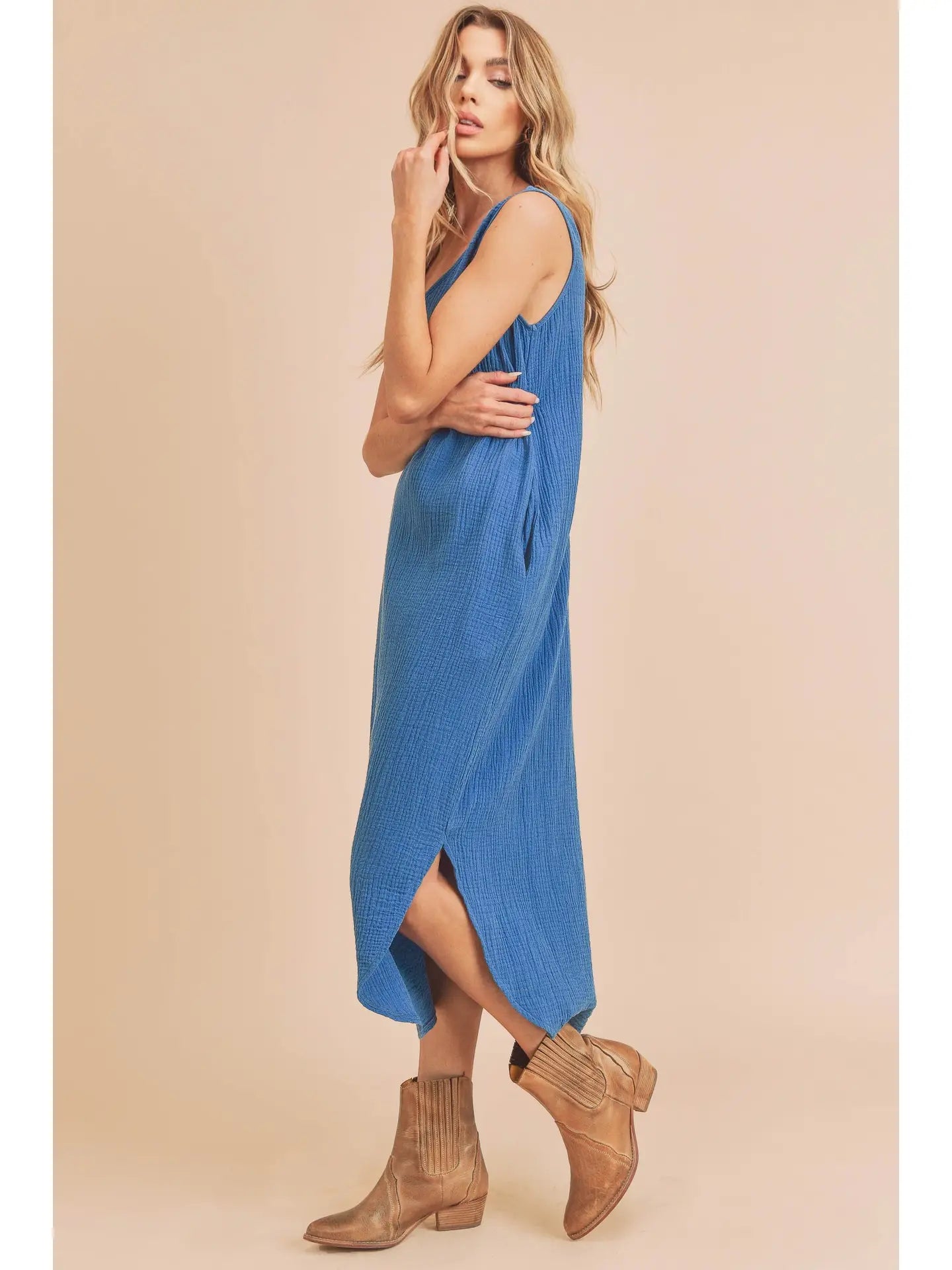 Soft and effortless, the Daisy Dress is your go-to warm-weather staple. It features a relaxed tank silhouette with a rounded hem, side slits, and a classic waffle-knit texture for an easy, laid-back look.