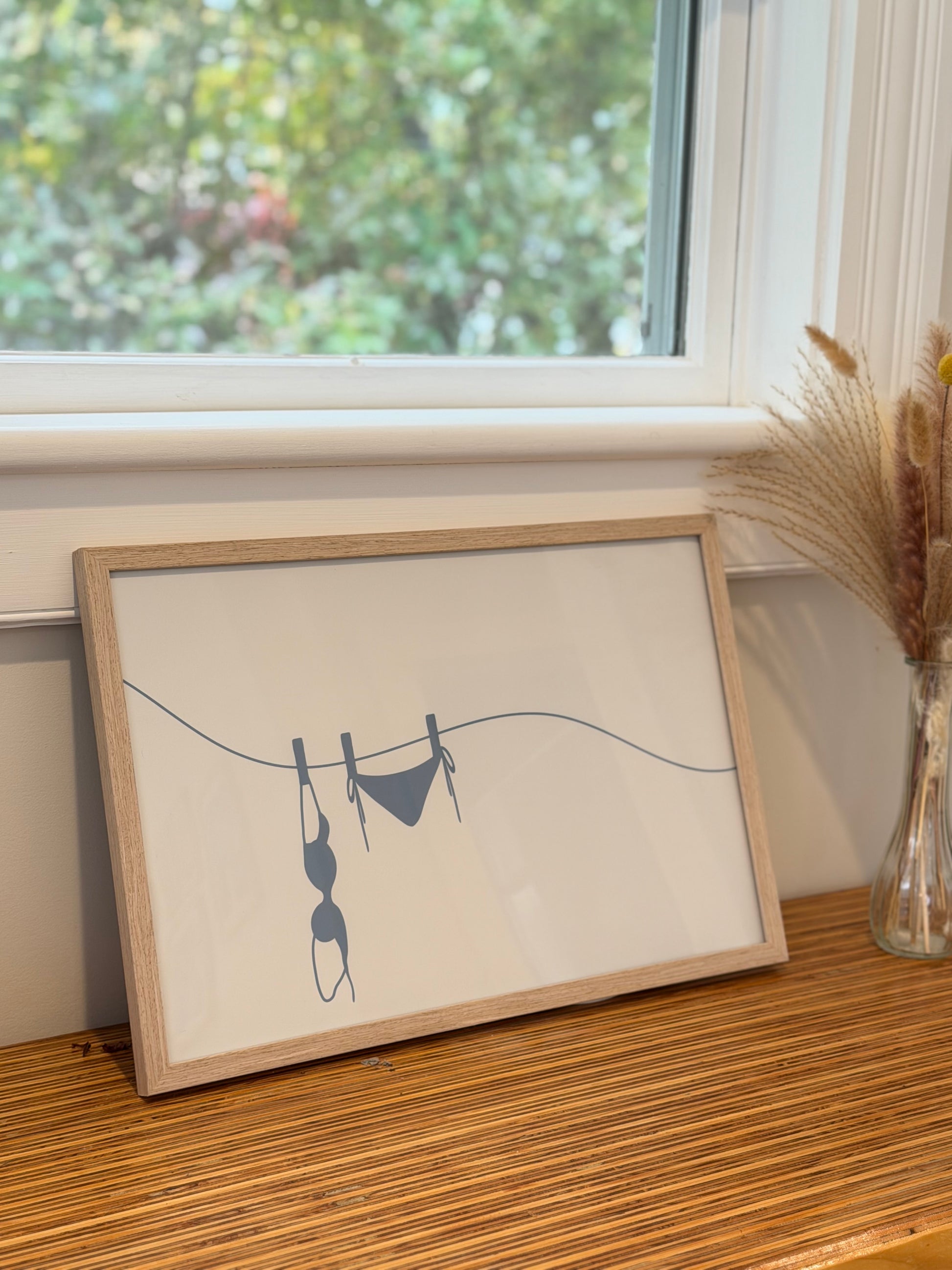 Bring on the beach vibes! This fun bathing suit wall art is a splash of sunshine for any space. Perfect for adding a pop of coastal personality to your bathroom, beach house, or gallery wall—because every room deserves a little swimsuit season energy!
