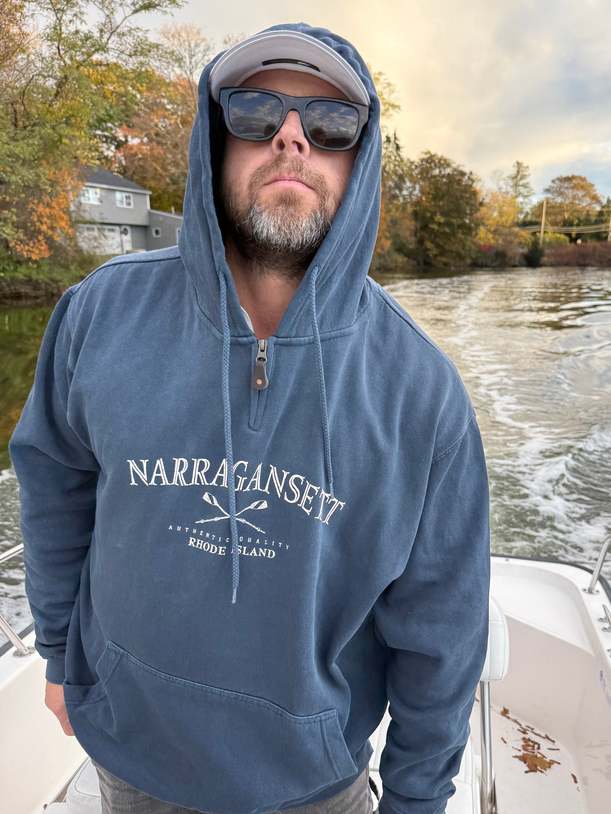 This Narragansett 1/4 zip comes in blue, and is designed for all-day comfort in unisex sizing. The crossed oar graphic adds a nautical touch, making it a must-have for water lovers and seaside adventurers.