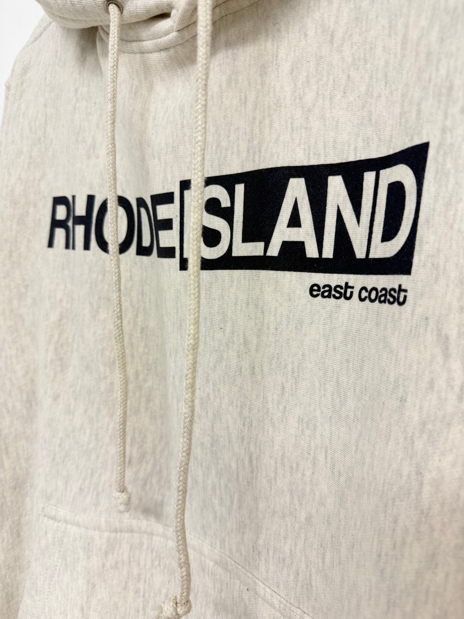 Unisex grey Rhode Island pullover with a small shout out to the east coast.