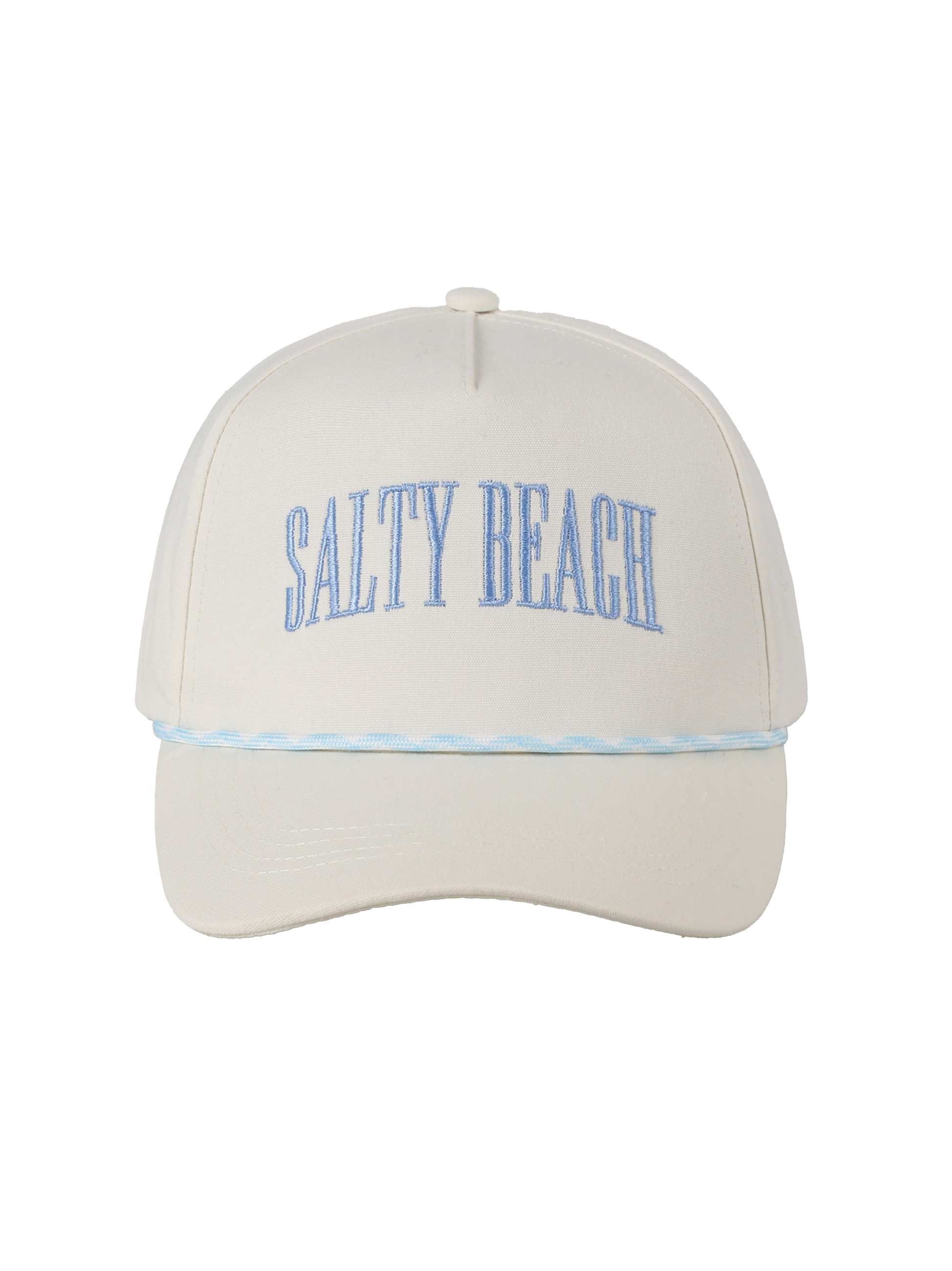 Get ready for summer with the playful and stylish "Salty Beach" Rope Hat! This crisp white cap features the fun phrase "SALTY BEACH" boldly embroidered across the front in light blue, perfect for anyone who loves the ocean. Adding to its vintage-inspired look is a cool pink and white braided rope detail running across the bill. With a relaxed crown and an adjustable closure (depending on the back style), this hat offers a comfortable fit for boardwalk strolls, beach days, or just dreaming about your next coastal escape.