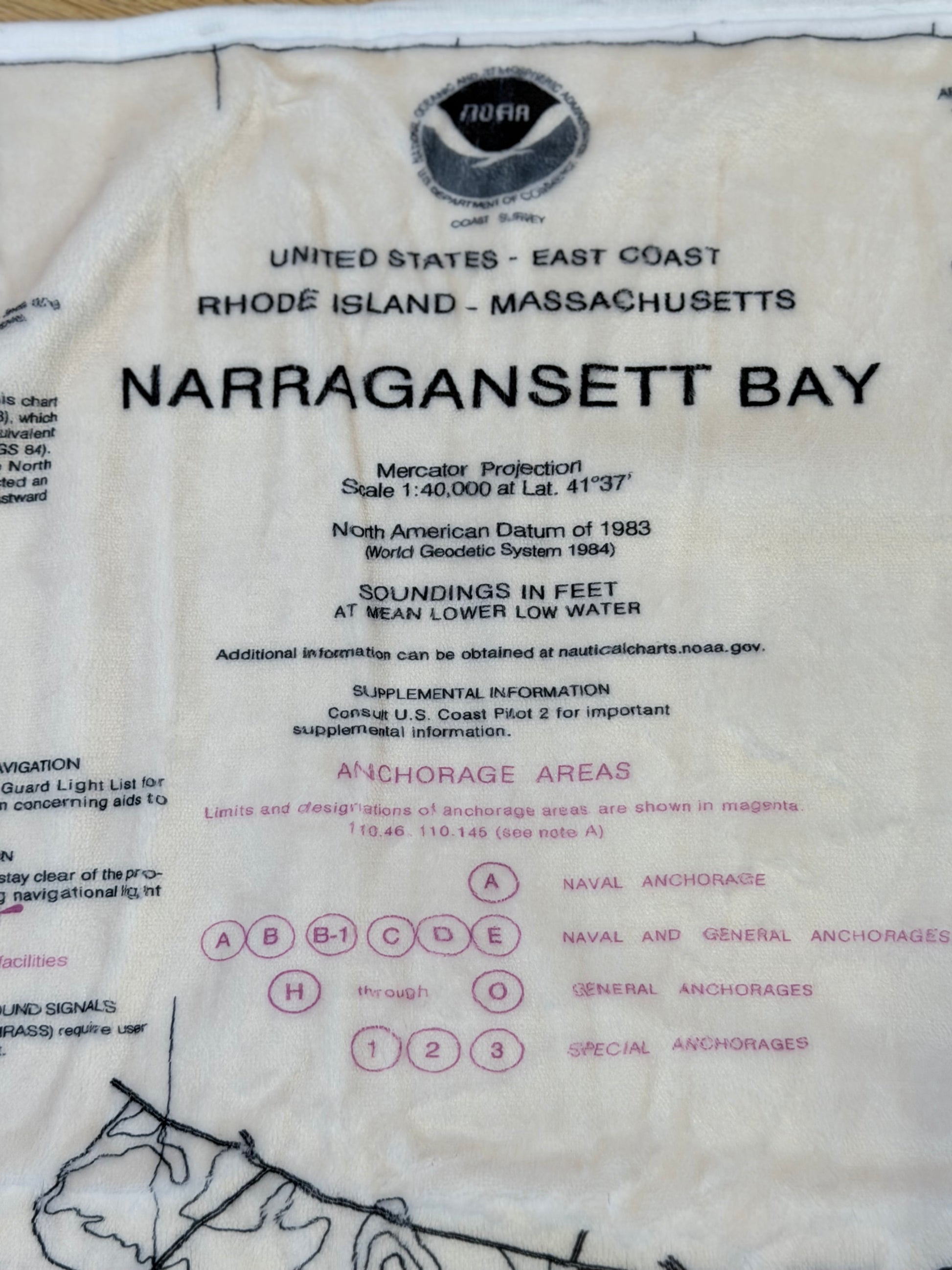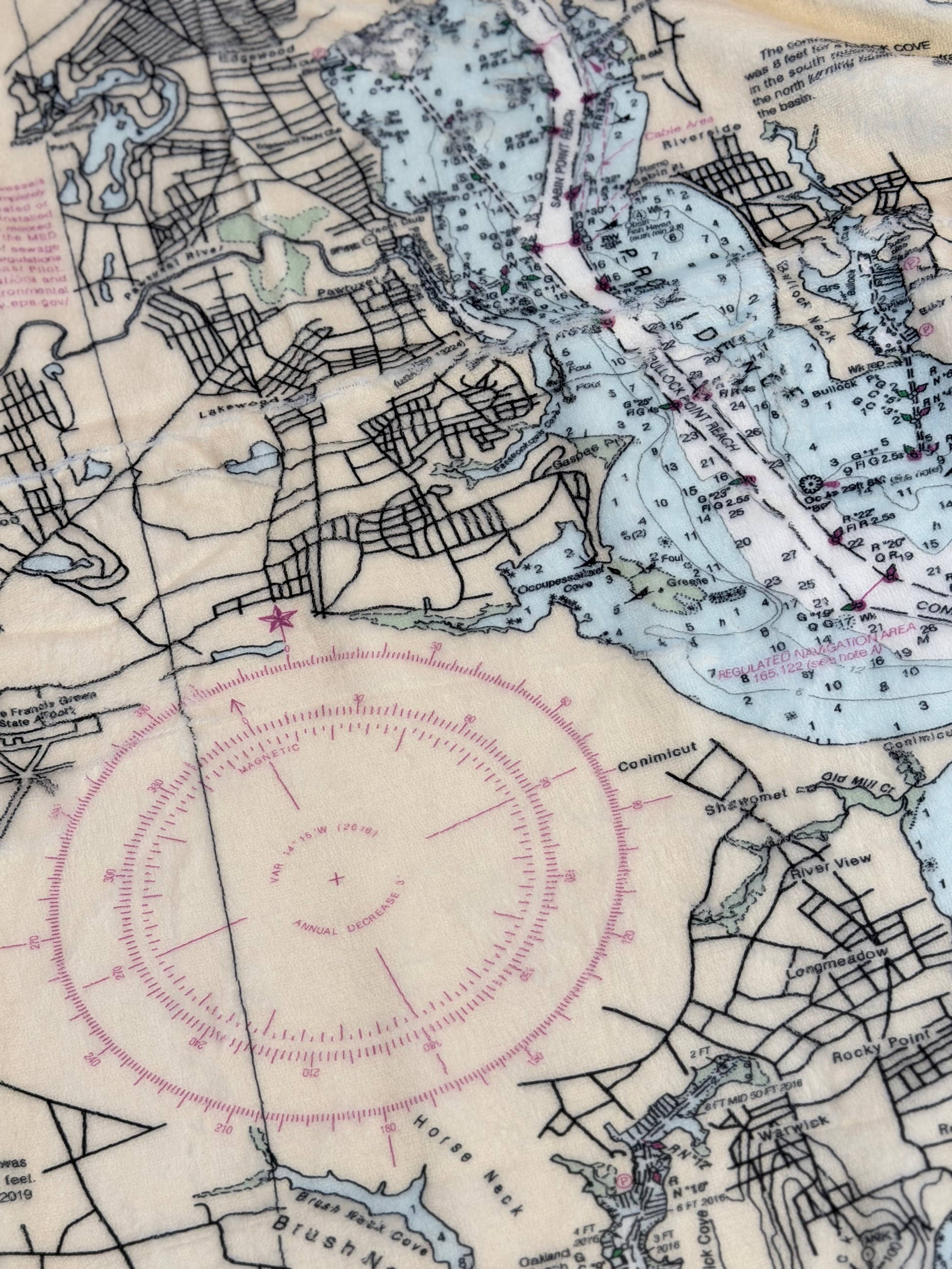 Whether you're cozying up on your couch or relaxing by the waves, this oversized throw is your perfect companion. Featuring a beautiful, detailed Nautical map of Narragansett Bay, it's a stylish nod to the Ocean State and its iconic waters.